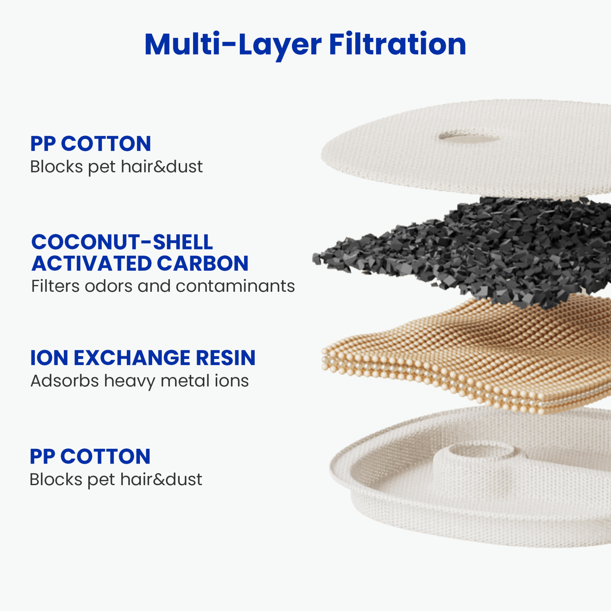 - Filter blocks pet hair and dust, filters odors and contaminants and absorbs heavy metal ions