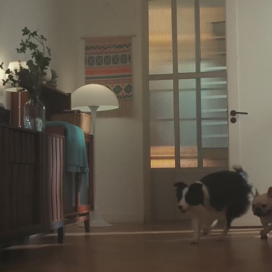 - Wide tray with low-spill design keeps water clean even when pup drinks vigorously