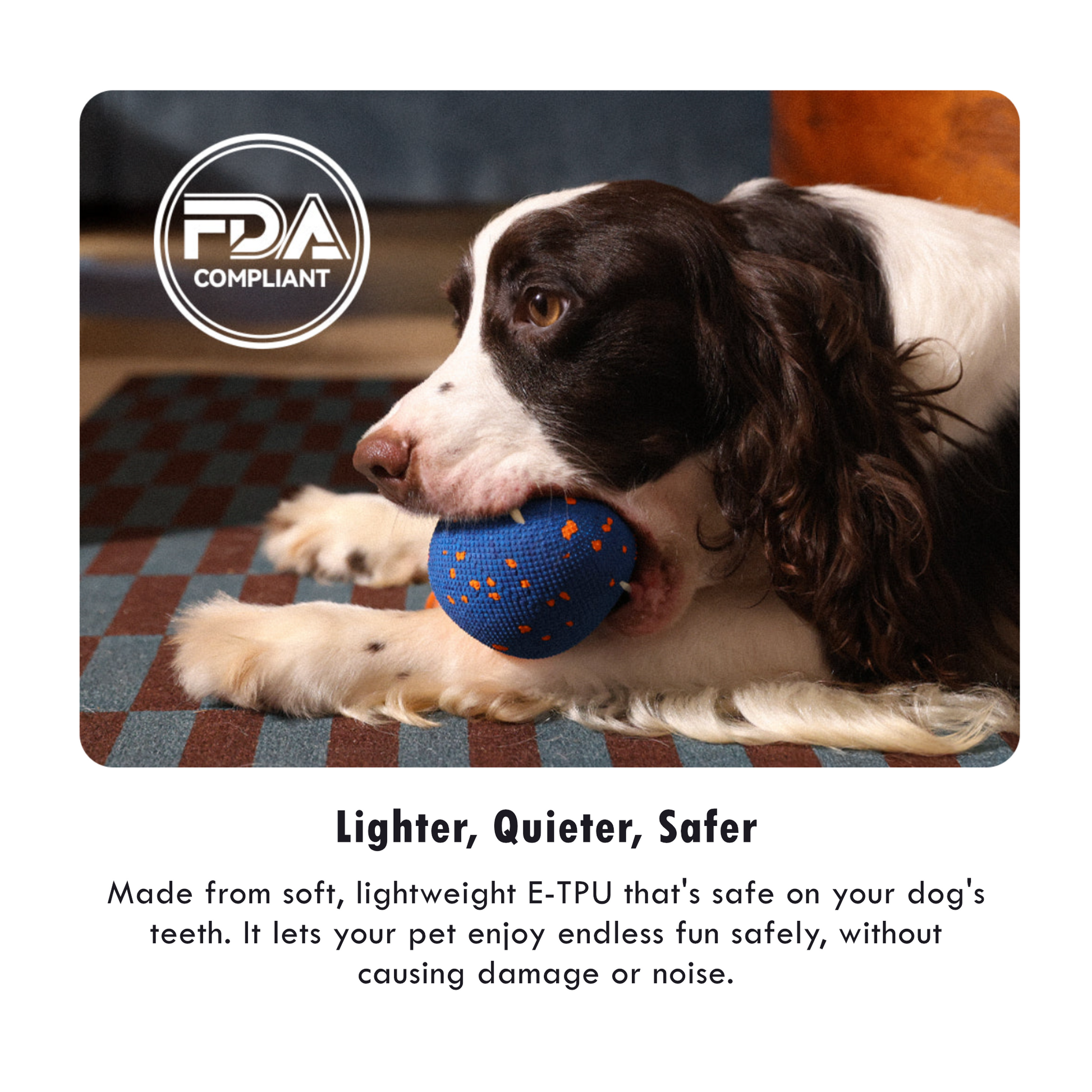 - Made from soft, lightweight E-TPU that’s safe on your dog’s teeth - lets your pet enjoy endless fun safely, without causing damage or noise