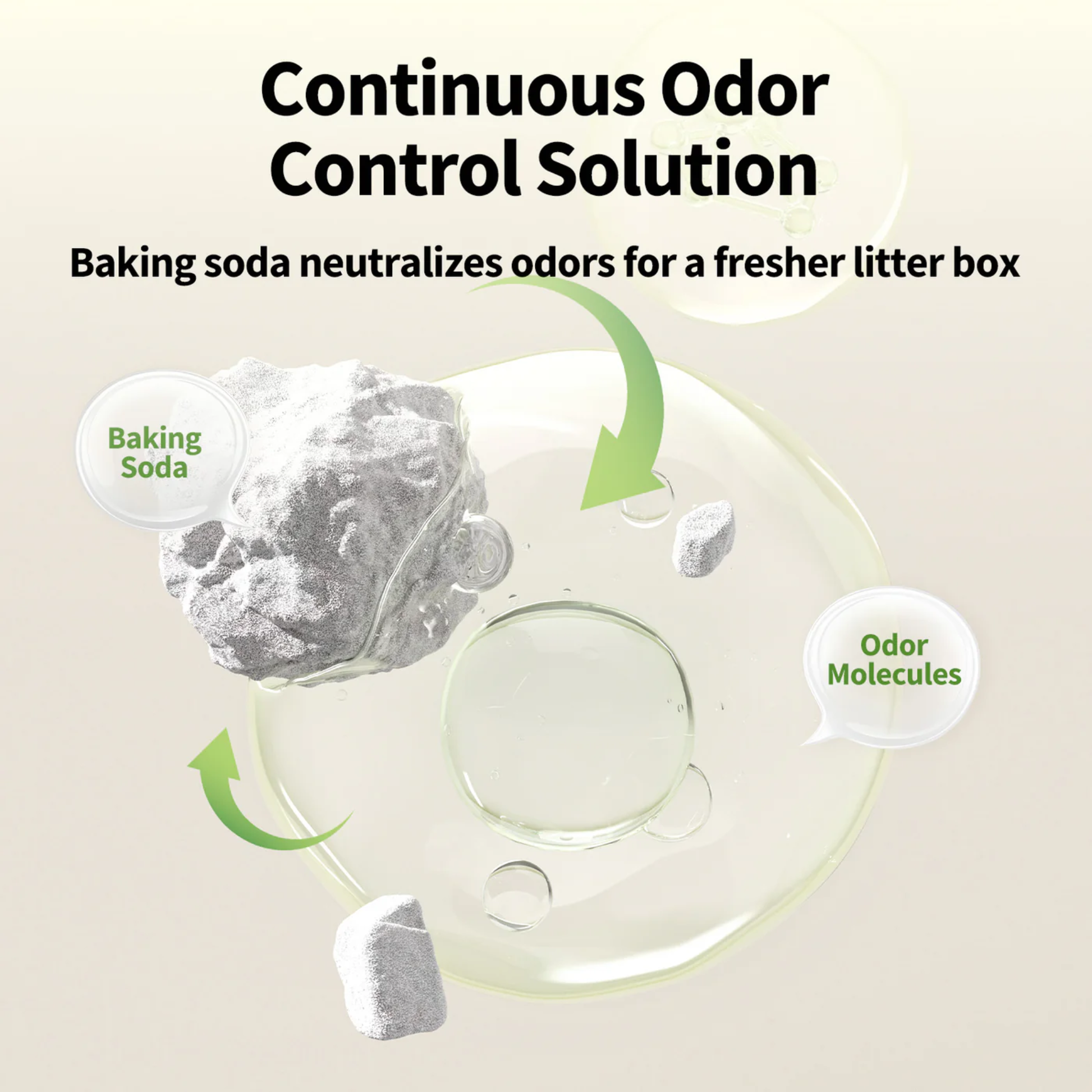 - Baking soda absorbs and neutralizes odor molecules in cats urine and poop by increasing pH levels