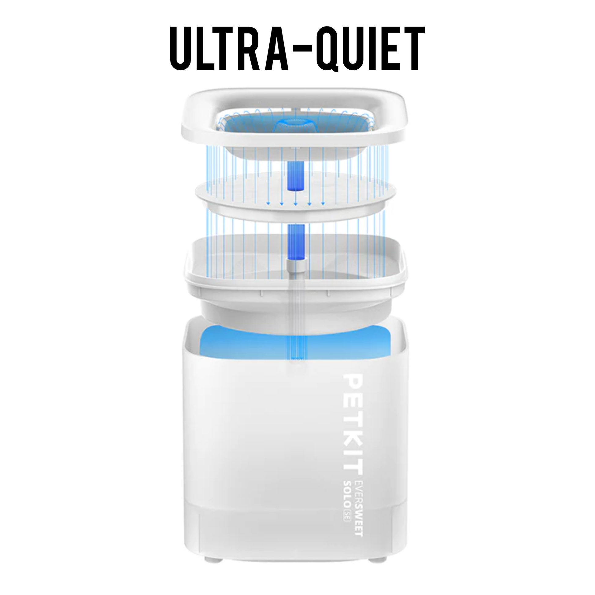 The Solo SE Water Drinking Fountain simulates a natural spring which encourages your pet to feel relaxed and drink more water. Its 1.8 litre capacity can provide a cat with water for 8 to 10 days. It features a wireless pump which makes it safer for pets to use. The multi-layer filtration system filters out hair and dust, removes odor and heavy metals from the water. The Solo SE is also ultra quiet to give you and your pet an undisturbed rest. The detachable design makes it easy to clean.