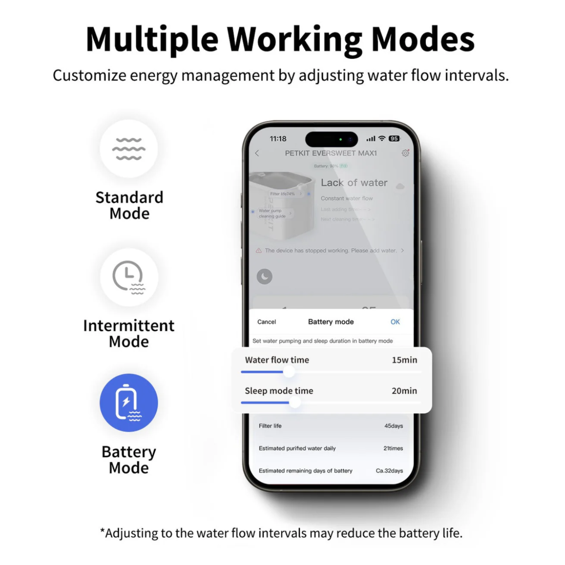 - Real-time monitoring with Petkit app - keep track of pet's daily water consumption to gain health insights