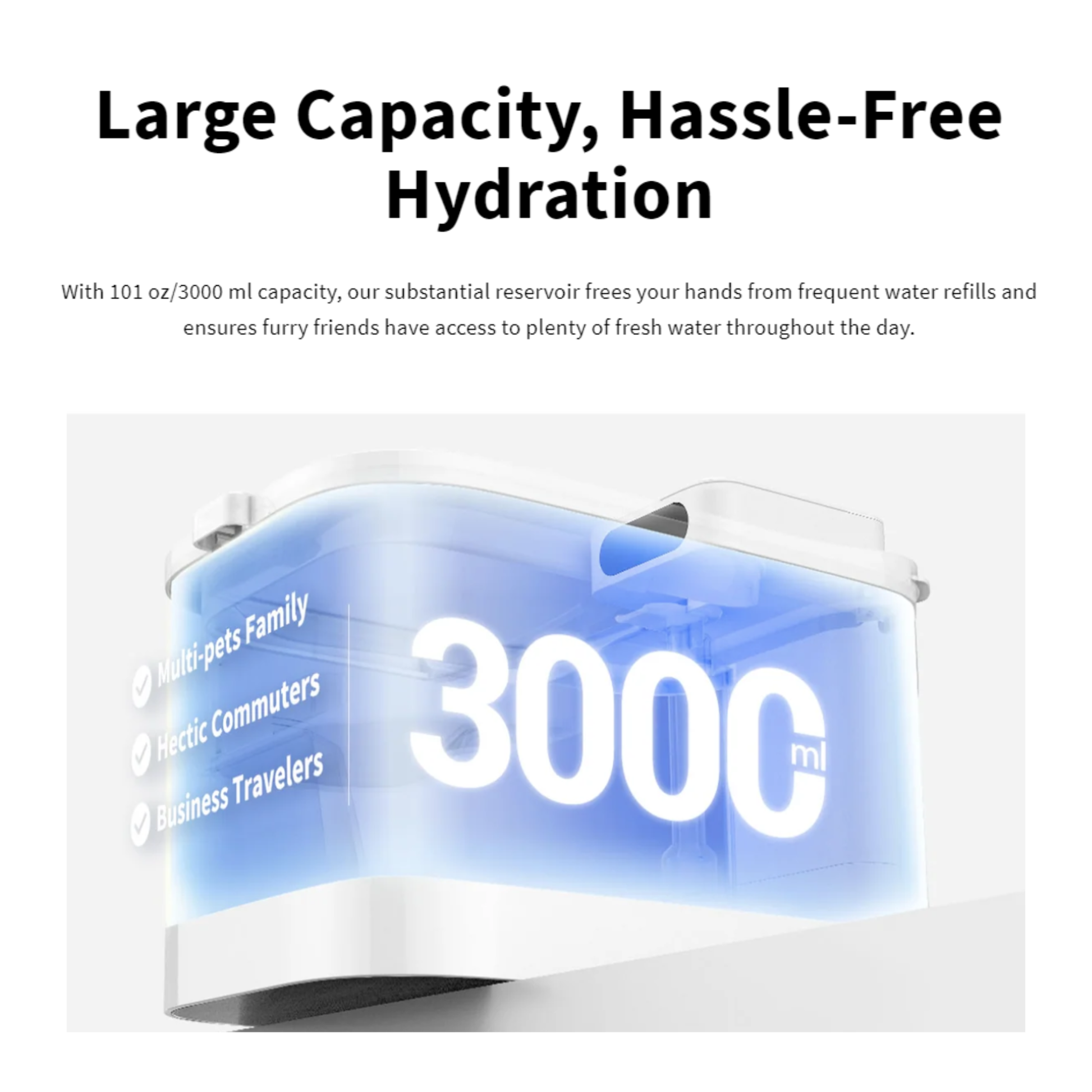 - 3L Large Water Capacity - can provide up to 16 days of continuous water supply
