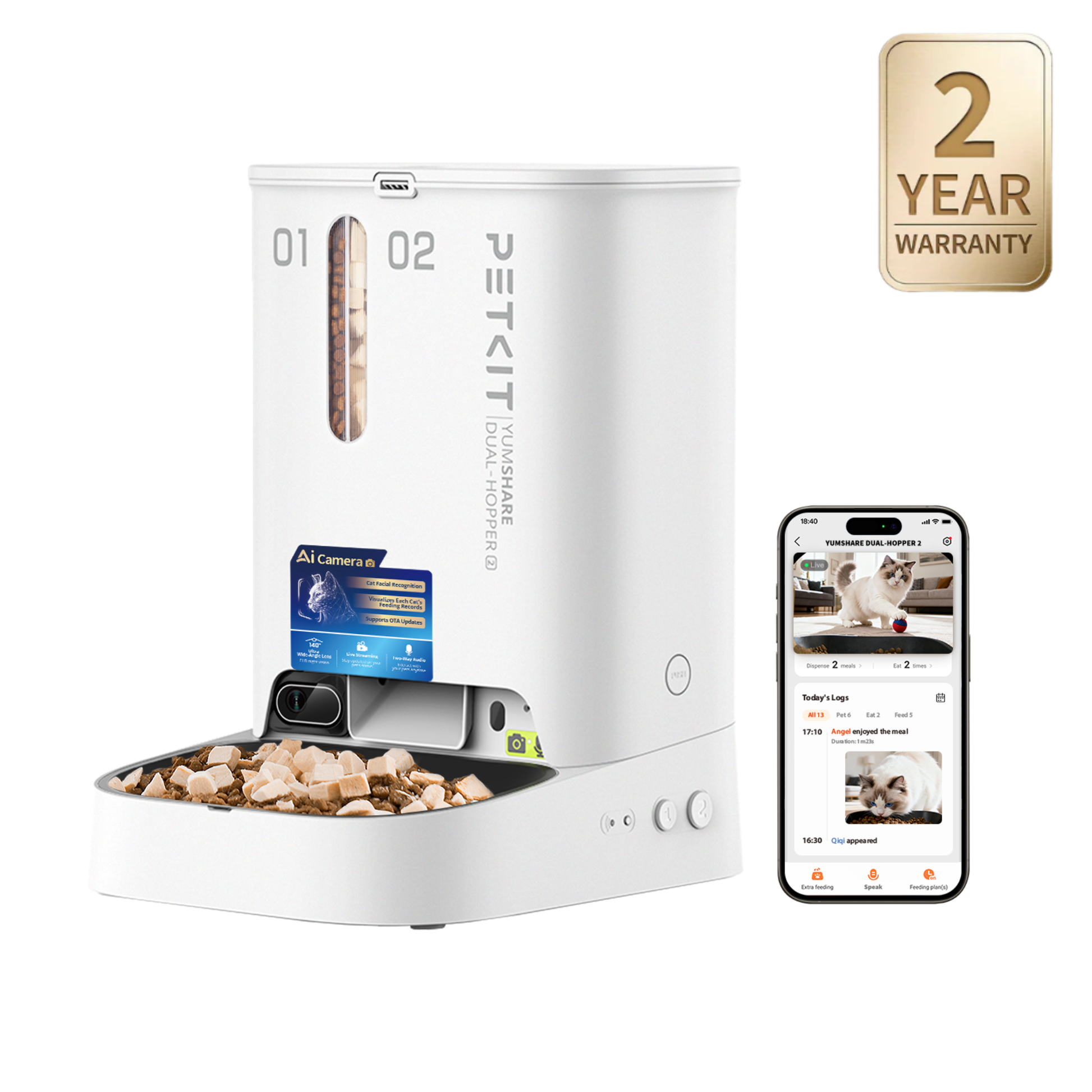 - New multi-pet recognition for households with multiple pets for individual feeding tracking
